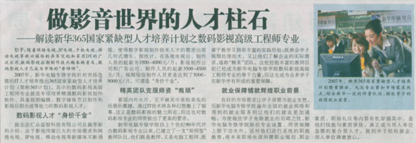10月15日,《合肥晚報》報道:“做影音世界的人才柱石——解讀新華365國家緊缺型人才培養(yǎng)計劃之數(shù)碼影視高級工程師專業(yè)”,敬請關(guān)注!