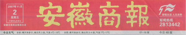 《安徽商報》報頭《安徽商報》報道新聞頁面截圖