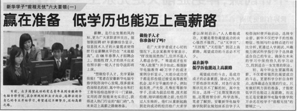 當(dāng)前位置:首頁(yè) > 新聞中心 > 青春新華 > 《安徽商報(bào)》報(bào)道:贏在準(zhǔn)備 低學(xué)歷也能邁上高薪路