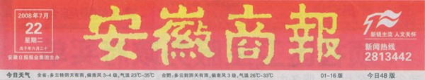 《安徽商報》報頭《安徽商報》報道新聞頁面截圖
