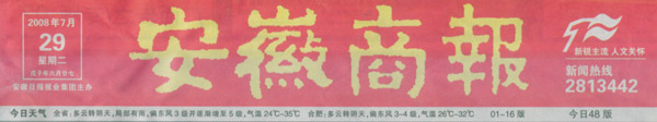 《安徽商報(bào)》報(bào)頭 《安徽商報(bào)》報(bào)道新聞頁面截圖