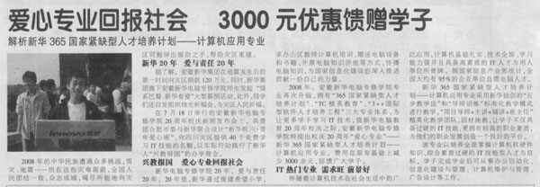 當(dāng)前位置:首頁(yè) > 新聞中心 > 青春新華 > 《安徽商報(bào)》報(bào)道:愛(ài)心專(zhuān)業(yè)回報(bào)社會(huì) 3000元優(yōu)惠饋贈(zèng)學(xué)子