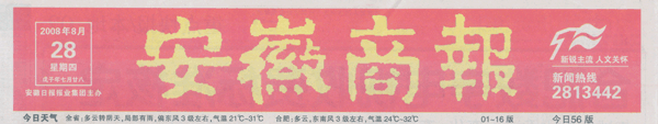 《安徽商報》報頭 《安徽商報》報道新聞頁面截圖