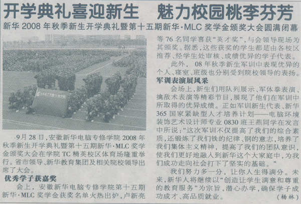 當前位置:首頁 > 新聞中心 > 青春新華 > 《合肥晚報》報道:開學典禮喜迎新生 魅力校園桃李芬芳