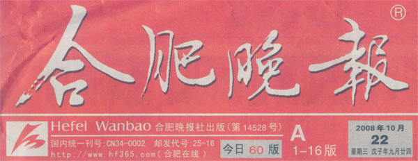 《合肥晚報》報頭 《合肥晚報》報道新聞頁面截圖