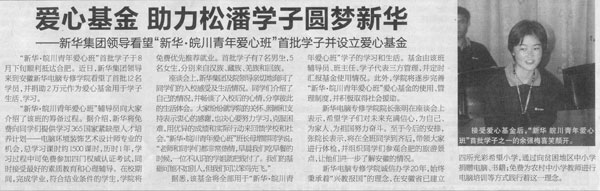 《江淮晨報(bào)》報(bào)道:愛(ài)心基金助力松潘學(xué)子圓夢(mèng)新華