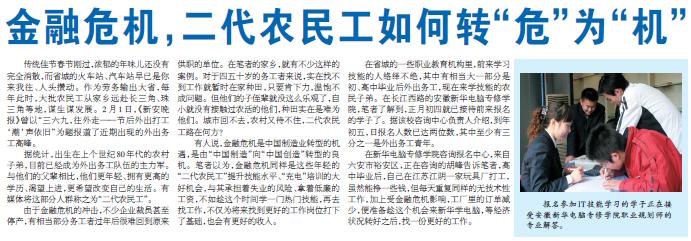 當前位置:首頁 > 新聞中心 > 青春新華 > 《合肥晚報》報道:金融危機,二代農民工如何轉“危”為“機”