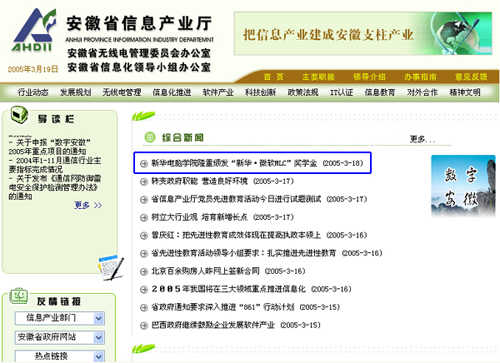 省信息產(chǎn)業(yè)廳網(wǎng)詳細(xì)報(bào)道我院新聞頁面截圖