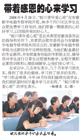 當前位置:首頁 > 新聞中心 > 青春新華 > 《合肥晚報》報道:帶著感恩的心來學習