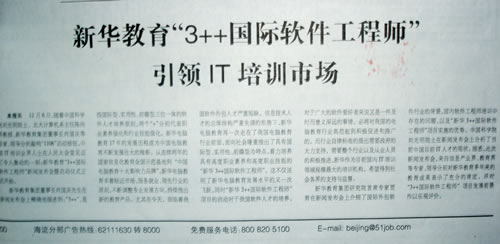 標題:新華教育“3++國際軟件工程師”引領IT培訓市場