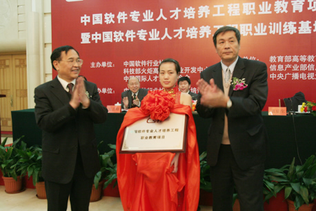 中國軟件行業(yè)協(xié)會陳沖理事長、科技部火炬中心裴夏生副主任為“中國軟件專業(yè)人才培養(yǎng)職業(yè)教育項目”揭牌