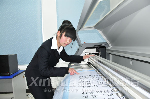 此外,除了投資建設近百平方米實訓中心,在設備方面,實訓中心內部配設了國內頂尖的高端教學設備。據學院相關負責人介紹:“項目實訓階段學生全部在實訓中心完成項目作品,而實訓中心從外部裝飾到機器設備都是按照國內大中型企業標準來配備的。包括蘋果電腦、彩色打印機、手繪板、掃描復印一體機、刻字機、寫真機、噴繪機、投影儀等設計制作、輸出和各環節的必備硬件,高智能噴繪機更是國內院校中少有的高端教學設備。”其硬件條件與環境整體堪與一些大型廣告公司水平相媲美。目前此套配置標準,在國內培訓院校中,更屬頂尖水平。