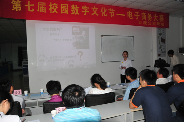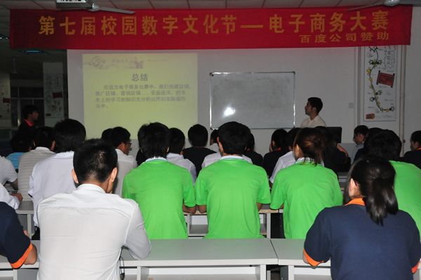 下午3點10分,在校教務處金主任的宣布下比賽正式開始。9組參賽選手分別就“網絡營銷策劃、網店籌建與管理、電子商務應用”等方面發表了精彩演說。隨后,由企業和校領導組成的評委團就每組選手的營銷方案進行現場點評和評分。