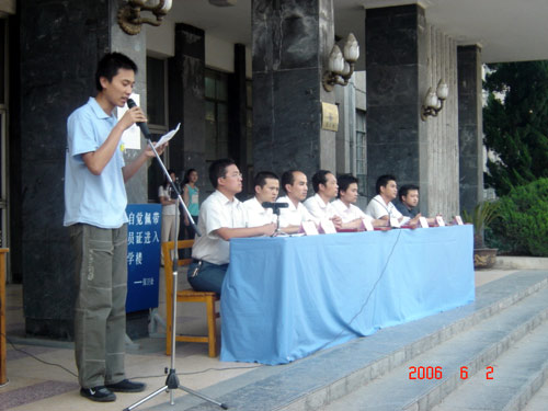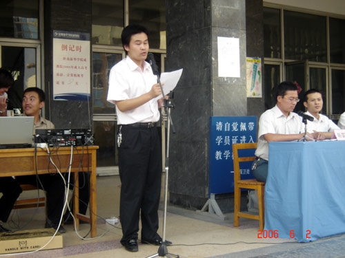 學(xué)管中心主管宣讀軍訓(xùn)匯報(bào)表演正式開(kāi)始
