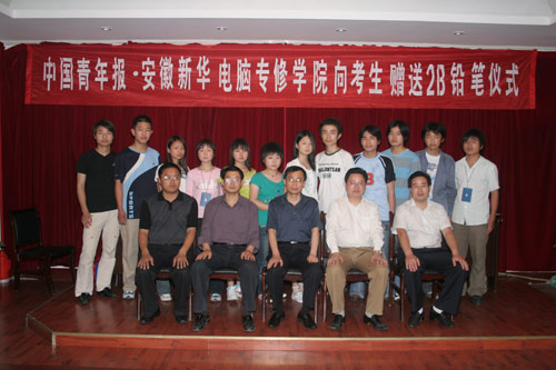 束開俊副院長在儀式上表示,新華教育秉承“興教報國”的教育理念,希望通過贈送鉛筆活動引起全社會對假2B鉛筆危害的清醒認識,為教育事業提供一片藍天凈土。新華也將繼續為教育事業的發展貢獻自己的綿薄之力,并祝參加2006年高考和中考的考生取得優異成績,升入理想學校,為父母、為安徽爭光!黃山中學校長汪學龍代表黃山中學全體師生感謝新華電腦專修學院和中國青年報社對同學們的關懷,并接受所贈鉛筆。贈送儀式后,參會代表與在場的同學合影留念。