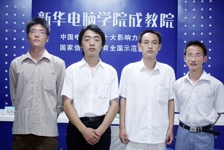 來自不同地方的四位同學,擁有各不相同的人生經歷,但卻為了一個共同的夢想來到新華,來尋找屬于自己的那份天空。曾經大學畢業,并做過一年銷售的汪軍輝說:“大學畢業后,在社會上摸爬滾打了一年多,發現自己的興趣仍在計算機上,于是辭去工作決定去學電腦。在經過詳細的比較后,為新華的專業和實力所吸引,選擇了新華來實現自己的夢想。”孔德軍和瞿志都是高中畢業后就來到新華,陶喜樂則是師范畢業做了一年的物理老師后,重新選擇人生的道路,來新華追尋自己的夢想!
