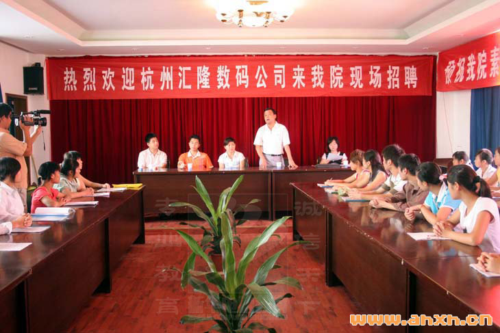 819,杭州匯隆數碼有限公司副經理倪惠國先生和匯隆合肥分公司的部門經理陳鐘閱一行,來到安徽新華電腦專修學院西區進行現場招聘。