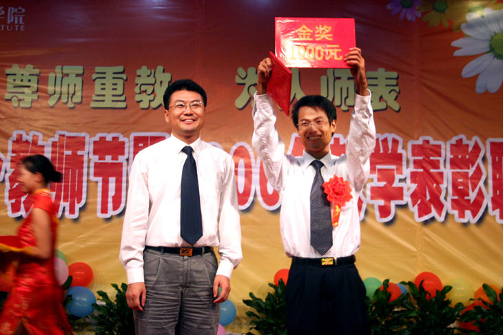 新華教育集團副總經理安徽新華電腦專修學院院長沙旭先生為獲獎老師頒獎
