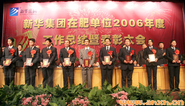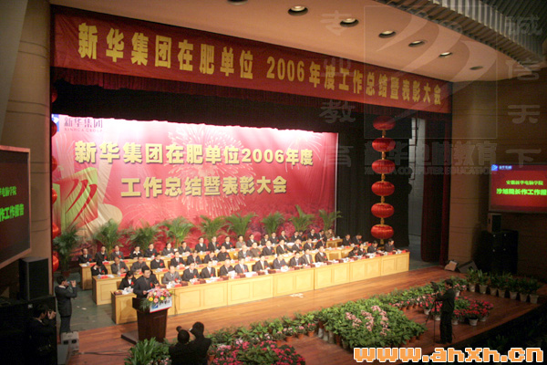 2月6日,新華集團在肥單位2006工作總結暨表彰大會在安徽大劇院隆重舉行,集團公司領導,新華集團副總經理吳成凱先生、李登文先生,新華教育集團副總經理、安徽新華電腦專修學院院長沙旭先生等及在肥單位領導出席了本次大會。