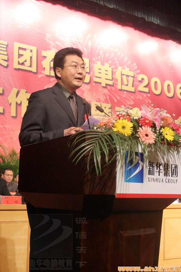 大會在雄壯的國歌聲中正式拉開帷幕。大會由集團公司領導主持,對在肥單位06年的工作情況給予高度肯定,并對07年的工作做了規劃部署。會上,與會領導為2006年度獲獎單位和個人頒發了證書和獎品,新華電腦專修學院以優異的成績被授予“2006年度先進單位”稱號。
