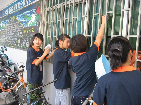 宣誓完畢后,學(xué)子們還自發(fā)的給老師辦公室進(jìn)行一次清掃,來表達(dá)我們對老師們的感謝之情。在音樂“感恩的心”的伴奏下,近百位學(xué)子手拿工具,對每個(gè)辦公室進(jìn)行一次認(rèn)真的打掃。此外,學(xué)院市場調(diào)研協(xié)會還連夜趕制了教師節(jié)海報(bào)、大型的簽字欄,同學(xué)們在上面寫下對老師的美好的祝愿。