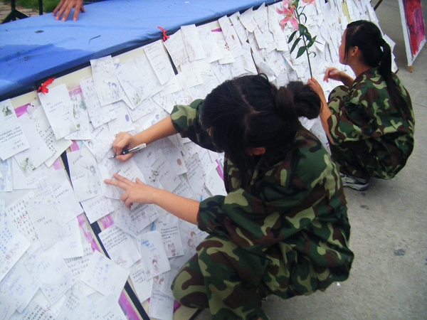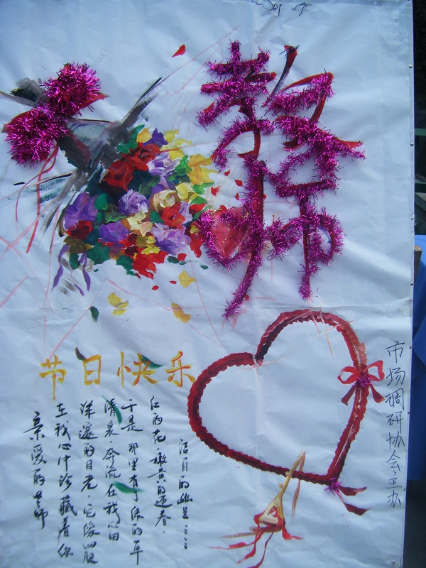 此外,市場調研協會還在擺起展臺,向同學們收集給老師的祝福語,不到10分鐘,展臺前十幾米長的展板上就被同學們貼滿了各種祝福語!按盒Q到死絲方盡,蠟炬成灰淚始干!薄安傻冒倩ǔ擅酆螅瑸檎l辛苦為誰甜!薄袄蠋煟覀儛勰薄 同學們把對老師的感激與祝福簡短地寫來展板上,沒有華麗的辭藻,只有一顆心最真摯的祝福。