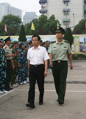 大會(huì)在雄壯的國(guó)歌聲中來(lái)開(kāi)序幕。安徽新華電腦專修學(xué)院副院長(zhǎng)束開(kāi)俊在武警安徽省總隊(duì)直屬支隊(duì)王春龍大隊(duì)長(zhǎng)的陪同下檢閱了參加本次軍訓(xùn)的千余名新生。參訓(xùn)新生以整齊的隊(duì)列、昂揚(yáng)的斗志接受領(lǐng)導(dǎo)的檢閱。