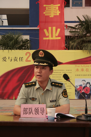秋風颯爽,丹桂飄香,9月18日下午,安徽新華電腦專修學院365計劃教育西校區2008級第二批學子軍訓動員大會在運動場隆重舉行。學院副院長吳獻金,武警安徽省總隊直屬支隊隊長劉駒及學院相關部門領導出席了大會。全體帶隊教師、軍訓官兵和參加軍訓的千余名學子參加了動員大會。