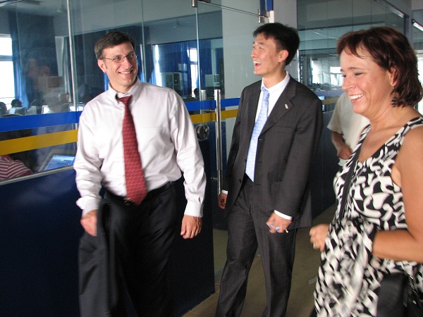 下午兩點左右,CompTIA美國訪問團來到安徽新華電腦專修學院新校區,對新校區的校園設施、硬件設備等進行了參觀和考察。一路上,Bryan Kainrath先生、Kyle Gingrich女士贊不絕口,對于新華的先進教學設施尤其贊賞。