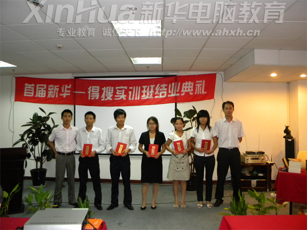 典禮上,首屆新華—得搜實訓班兩位聯(lián)席班主任(新華教育集團駐上海就業(yè)指導中心沈海峰老師、上海得搜廣告有限公司銷售經理王捷)先后發(fā)言,對首批新華—得搜實訓班的學生的表現(xiàn)給予了充分的肯定。王捷說:“作為新華校友(王捷06年畢業(yè)于新華—電腦應用高級高全專業(yè)),看到今天的學弟學妹們能取得職場第一份成績,感到由衷的高興”。對實訓生在實訓過程中表現(xiàn)出的團隊精神、協(xié)作能力和學習能力,給予了高度評價。據(jù)王捷介紹,在兩個月的實訓期內,同學們學習了電子商務基礎、軟件基礎、電話銷售、會議營銷、商務談判、商務禮儀等課題。將分配到公司營銷中心阿里軟件部門工作。