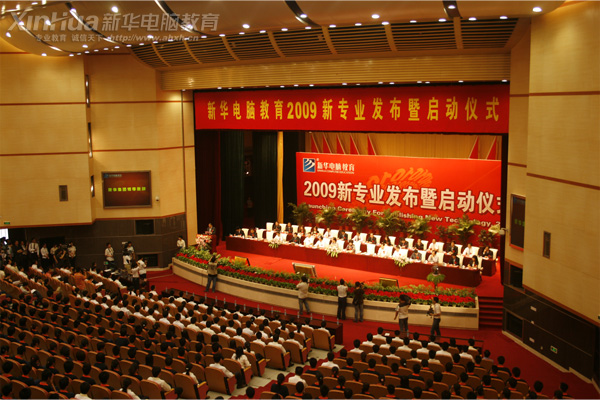 新華電腦教育2009新專業發布暨啟動儀式5月隆重推出,中央電視臺、《光明日報》、新華網、新浪網、搜狐網等數十家知名媒體齊聚合肥并紛紛給予報道。圖為儀式現場。