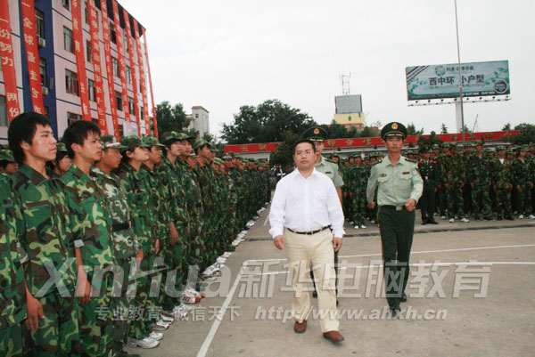 安徽新華電腦專修學院院長張明在講話中指出,本次軍訓恰逢中華人民共和國成立60周年,是同學們的榮譽,也是責任。60年來,全中國人民團結一心,攜手共進,艱苦奮斗,大大增強了綜合國力,實現了中華民族的偉大復興。作為民族發展基石的教育業也迅速發展,IT教育成為不可或缺的一支力量。希望同學們要有時代緊迫感,要認真對待每一天,努力學習;盡快適應新環境和融入新集體;樹立遠大的理想和抱負。在今后,用優秀的成績報答父母和老師,向祖國60華誕獻禮。