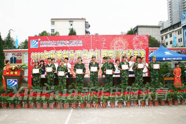 隨后,教務處負責人宣讀了學院《關于表彰2009級新生軍訓先進集體和個人的決定》,并與與會領導一同給他們頒獎。通過評獎評優,以此勉勵他們在今后的學習中取得更好成績;同時,希望大家以他們為榜樣,繼續發揚團結緊張、嚴肅活潑的良好作風,頑強拼搏,刻苦學習,爭取新的、更大的進步!