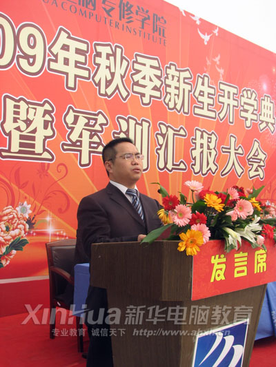 開學典禮上,張明院長作了重要講話。他代表全院師生員工對剛剛踏入新華校門的2009級全體新同學表示熱烈的歡迎和誠摯的祝賀,向大力支持和幫助我院軍訓工作的武警支隊教官表示衷心的感謝,對新生軍訓匯報表演中的優良表現給予了充分的肯定,他還強調指出,學校為你們成才搭建了良好的平臺,形成了比較系統的教育理念和教育方法,構筑了全過程、全方位的職業教育體系。希望你們朝著理想的目標,腳踏實地、不斷學習、反復實踐,通過在校的學習,真正成為基礎扎實、專業精湛的IT人才。