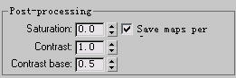這種方法最簡單,你只需要將渲染面板中的“Indirect Illumination(GI)”全局照明卷展欄中的“Post-Processing”(后加工參數組)中的Saturation(飽和度值)降低或直接調至0即可。
