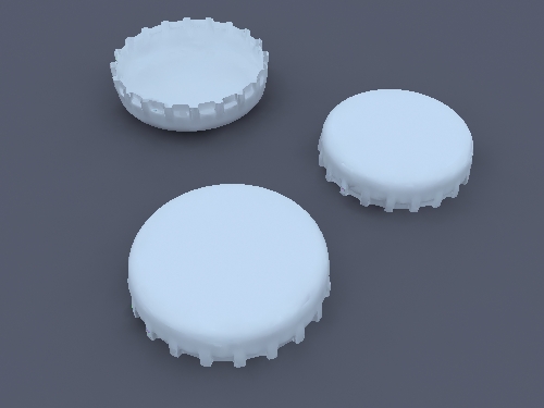 打開一個我制作好的場景,這里僅有三個瓶蓋模型,架設好了相機角度,但尚未賦予材質(zhì),我們利用VR自帶的Skylight配合GI來實現(xiàn)基本渲染,效果如圖9-1所示。