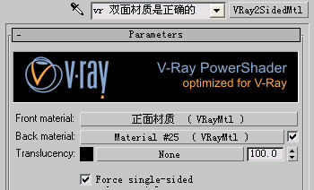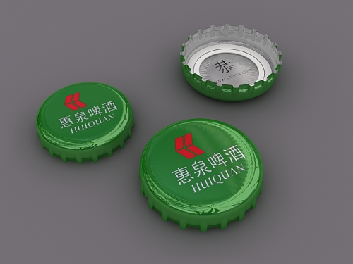 由于我們制作的瓶蓋模型是單面模型,所以起初我想用max自帶的“雙面材質(zhì)”來完成。正面基調(diào)是綠色反射材質(zhì),環(huán)境由VRay HDRI高動態(tài)范圍貼圖來模擬。圖案則由一張帶有alpha通道的tga圖來模擬,具體的制作方法在前面的三色球一節(jié)中已經(jīng)講述過了。背部材質(zhì)基色為銀白色,同樣貼入一張帶有alpha通道的文字貼圖。