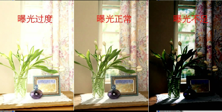 用過相機的朋友們都知道,如果進入相機的光線過多,照片就會曝光過度,畫面顯得非常亮;而進入的光線如果過少,就會曝光不足,畫面顯得非常暗;我們要通過一系列的控制,才能達到正常的曝光效果。說明圖片如圖3-4所示。