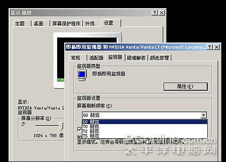 分辨率的設置上,不用多說,只要大于75Hz(理論值80Hz)就不會感覺頻閃。然而我們之所以提及,是因為很多時候用戶在使用軟件或者玩游戲的時候,因為某些原因不能正常退出,而導致參數的變更。因為大多數游戲默認的刷新率都是60Hz,很多時候非正常結束就會導致顯示器分辨率變成60Hz。很多用戶并不能夠覺察到這個細微的變化,而且這種現象很普遍。筆者每每在網吧轉一圈,90%的顯示器是在60Hz刷新率下使用。