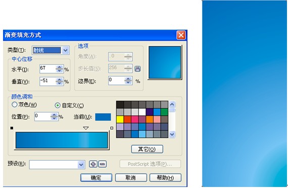 1) 繪制矩形框,并使用漸變工具填充漸變色,顏色設置如下圖所示: