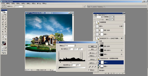 3.添加調整圖層——色階,輸入色階:14、1.23、255,如圖:圖1-3