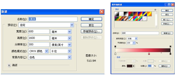 1) 新建文件,尺寸如圖,并使用漸變工具填充漸變色,顏色設(shè)置如下圖所示: