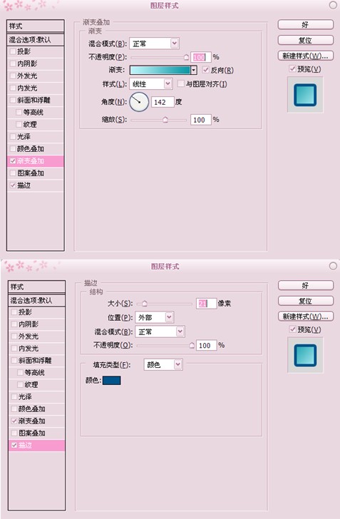 ,選擇“漸變疊加”命令,設置色標顏色RGB值為(11、152、165),右邊顏色RGB值為(190、244、250),其他參數設置如圖所示: