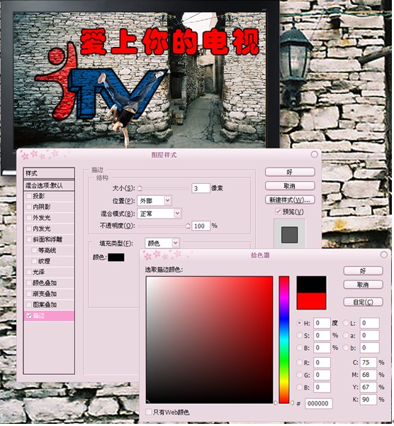 利用photoshop軟件中圖層色彩混合模式、描邊命令、、圖層樣式、文字工具等。具體步驟如下: