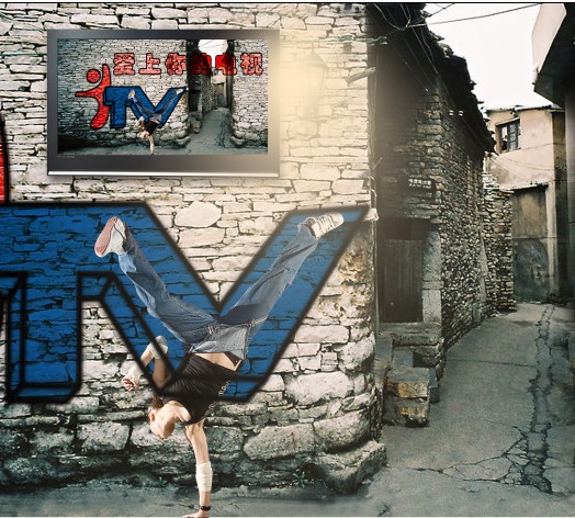 9)把前面做好的畫面效果放到電視圖片上,所得效果如圖所示: