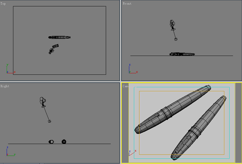 (1)打開(kāi)上節(jié)課我們制作好的場(chǎng)景效果,如圖1-1所示。目前場(chǎng)景中并沒(méi)有任何特殊材質(zhì)。按一下鍵盤(pán)上的F10鍵,打開(kāi)渲染場(chǎng)景設(shè)置對(duì)話框,將目前的渲染器由掃描線設(shè)置為Vray渲染器,并且調(diào)節(jié)好場(chǎng)景的測(cè)試階段參數(shù),這部分內(nèi)容比較簡(jiǎn)單,由讀者自行去完成。