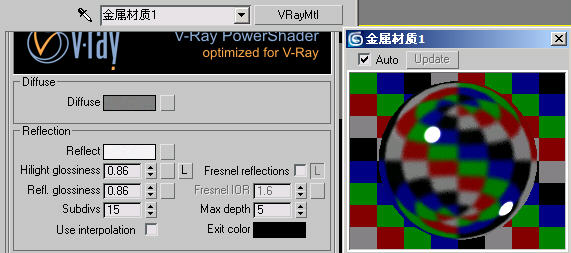 (3)接下來(lái)我們來(lái)設(shè)置鋼筆下半部分的材質(zhì),同樣給出參考圖和材質(zhì)球預(yù)覽,如圖1-3和圖1-4所示。