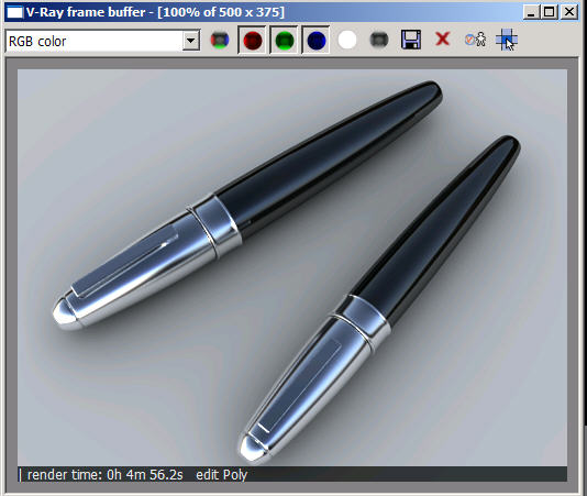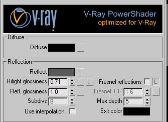 (2)按下鍵盤(pán)上的M鍵,打開(kāi)材質(zhì)編輯器,我們首先為鋼筆的上半部分設(shè)定材質(zhì)效果,這是一個(gè)簡(jiǎn)單的金屬材質(zhì),材質(zhì)參數(shù)設(shè)定如圖1-2所示,金屬的材質(zhì)非常簡(jiǎn)單,我不用多說(shuō),大家只要調(diào)節(jié)顏色和反射就可以了,折射是沒(méi)有的。至于反射多少,根據(jù)你的感覺(jué)啦,這不一定的,我給的灰度值為242。