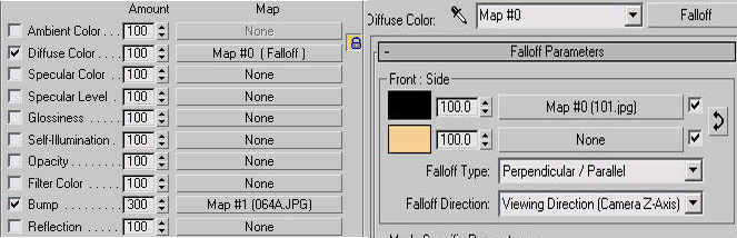 (9)最后為枕頭賦予一個(gè)簡(jiǎn)單的表面色貼圖和凹凸紋理貼圖,材質(zhì)參數(shù)設(shè)置如圖1-9所示,具體的表面紋理和凹凸紋理由讀者自定。