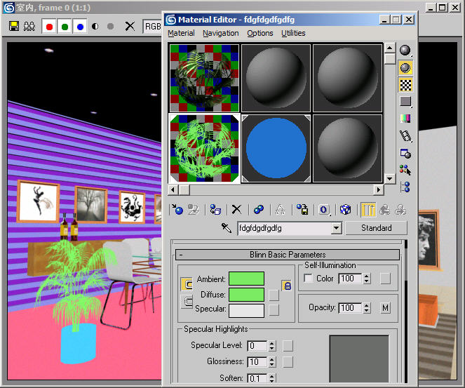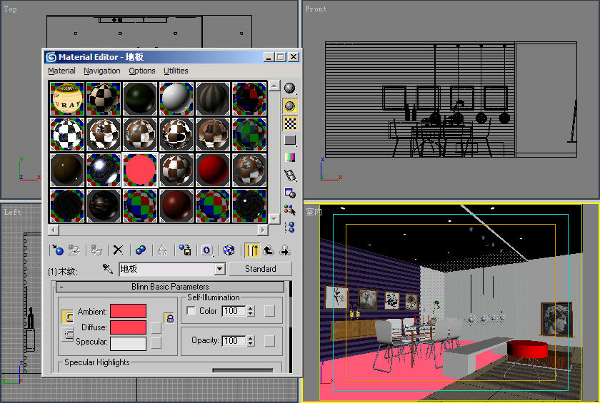 (5)選擇場景中的地板,在材質(zhì)編輯中找到它所對應(yīng)的材質(zhì),我們以地板為例來進(jìn)行講解,原始材質(zhì)效果如圖1-3所示。